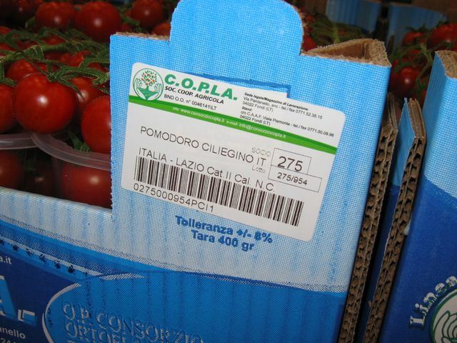 "Il ciliegino a grappolo viene confezionato in cassette, sotto il marchio C.O.P.LA Alta Qualità. La varietà che qui vediamo è il pomodoro cherry "Shiren" dell'azienda sementiera Cois94."