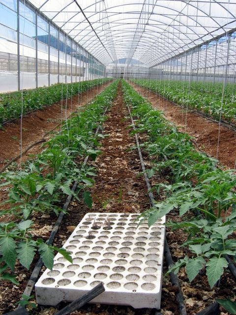 All'interno della serra è stato da poco eseguito il trapianto delle piante di ciliegino Shiren.
