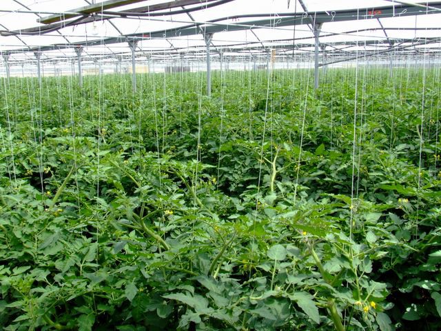 Visitiamo ora un'altra serra, dove le piante di ciliegino si trovano ad uno stadio successivo di sviluppo.