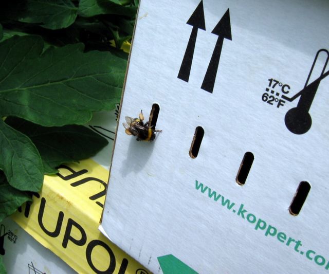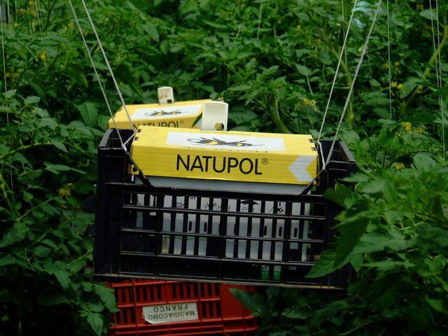 L'impollinazione di queste piante viene realizzata per mezzo dei bombi. Le arnie sono contenute in queste scatole e ogni colonia ha una vita attiva di 8-10 settimane. I bombi sono estremamente accurati nell'impollinazione e non tralasciano nemmeno un fiorellino.