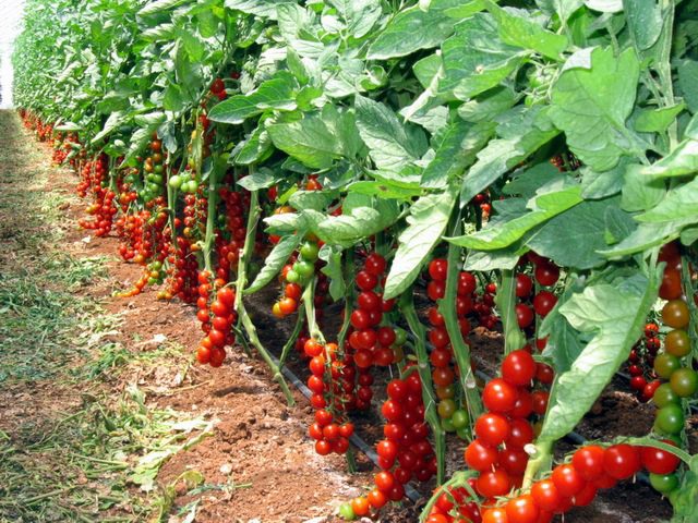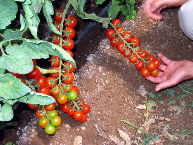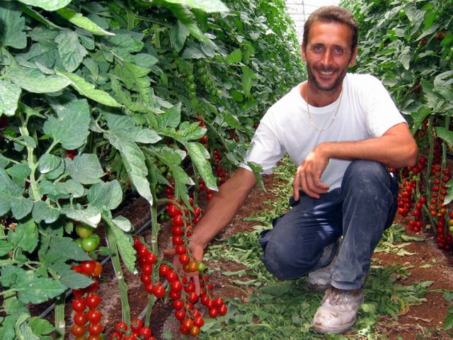 "I ciliegini che crescono in questa serra saranno pronti per la raccolta tra circa un mese. Il tecnico Giuseppe spiega: "Qui non facciamo un ciclo lungo di produzione, ma alterniamo la produzione di ciliegino con quella della zucchina. In questo modo lavoriamo il terreno una sola volta all'anno, a settembre. L'alternanza delle colture, infatti, ci consente di mantenere e rinnovare gli elementi nutritivi del terreno."