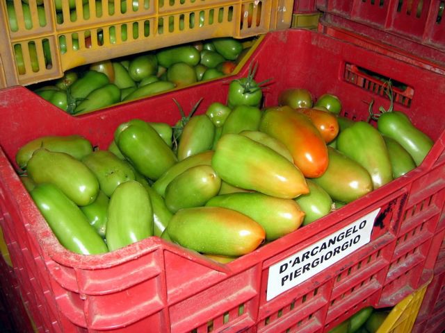 "Qui vediamo una tipologia di San Marzano che si può raccogliere sia verde che rossa, consentendo così al produttore di avere a disposizione un prodotto versatile: "Come Consorzio C.O.P.LA - spiega Giuseppe - investiamo molto nella sperimentazione di nuove varietà, sia per testarne la resistenza alle principali patologie, ma anche per garantire ai nostri produttori una gamma di prodotti che sia ben spendibile commercialmente."