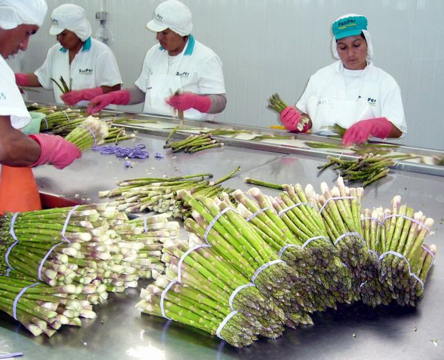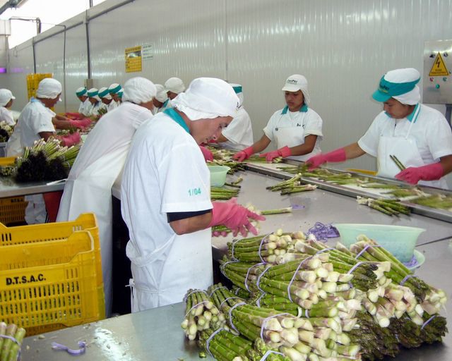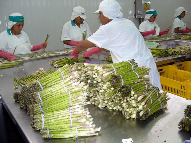 La linea di lavorazione degli asparagi verdi in Peru'.