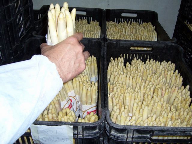 Asparagi bianchi confezionati a mazzi in Peru'. Si ringrazia Pino Pezzuoli (POA Foggia) per il materiale fotografico.