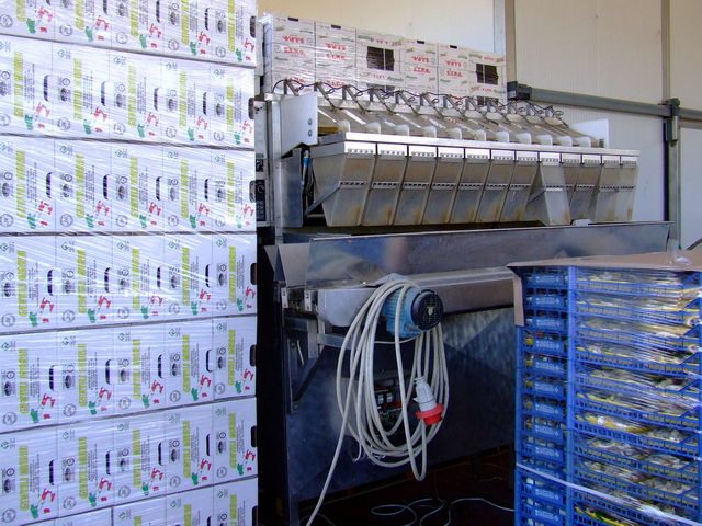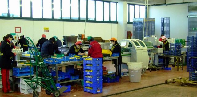 Qui vediamo la linea di confezionamento del prodotto appena raccolto.