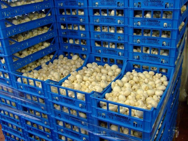 "I "letti" per la produzione vengono abbondantemente innaffiati (fino a 40 litri per metro quadro) e le condizioni climatiche della stanza vengono variate a seconda delle esigenze di crescita dei funghi. Il ciclo completo dura 40 giorni, al termine dei quali il substrato viene sostituito."