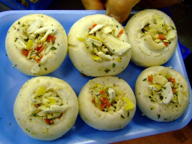 "Una vaschetta di funghi ripieni, destinati alla cottura in forno o in padella. Si tratta di uno dei prodotti "artigianali" proposti dall'Azienda Gentili Maria."