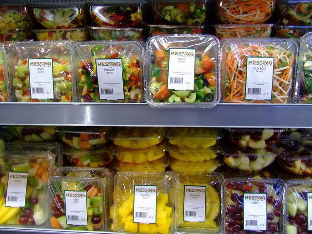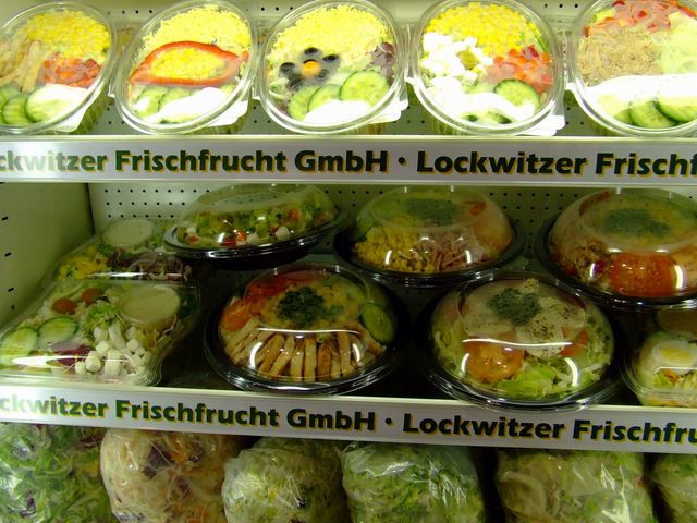 Vaschette di verdure miste presso lo stand della tedesca Lockwitzer Frischfrucht.