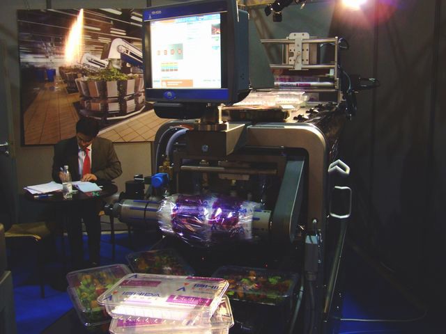 Dettaglio del macchinario presentato presso lo stand della multinazionale Ishida.