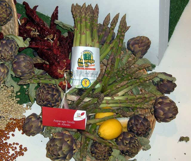 Una composizione di ortaggi nella quale spicca l'Asparago Verde di Altedo