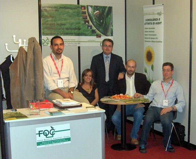 Lo staff FQC (Food Quality Control) Italia presso l'edizione 2008 di Cibus. Da sinistra a destra: Antonio Martino, Sig.na Fiorini, Remo La Farciola, Matteo Lanfranco Rossi e Christian Riciputi