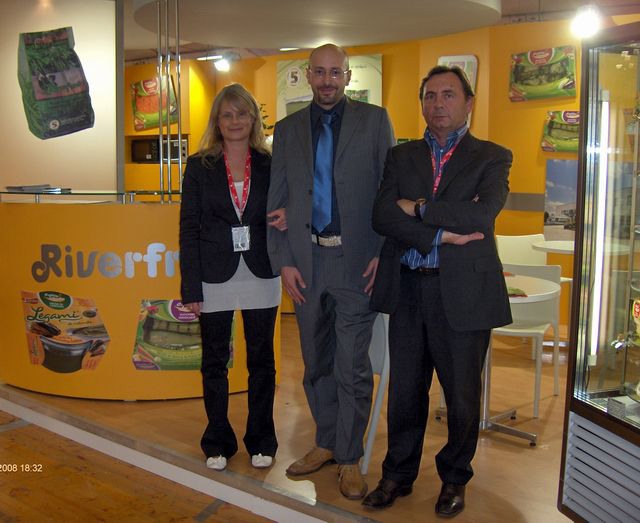 Matteo Lanfranco Rossi (FQC Italia - al centro), insieme ai rappresentanti dello stand Riverfrut