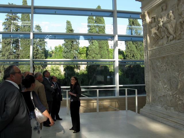 Prima della conferenza stampa, gli ospiti vengono condotti in visita all'Ara Pacis.