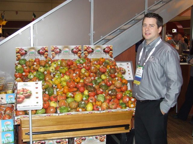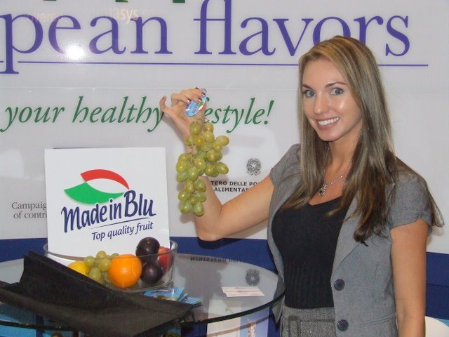 Da sinistra a destra: Nancy Tucker, vice-presidente marketing della PMA, Alessandra Ravaioli, in rappresentanza del CSO (Centro Servizi Ortofrutticoli) nell'ambito dell'iniziativa European Flavors e Federico Milanese (Mediterranean Fruit Company).