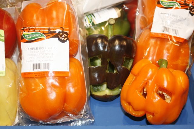 I peperoni di Halloween proposti dalla compagnia The Greenery. Oltre alla varieta' di colore arancione, gli insoliti peperoni di colore nero vengono prodotti esclusivamente da due produttori olandesi. I peperoni sono proposti gia' corredati da stampini, con i quali i bambini possono ritagliare nel peperone volti spettrali, da trasformare poi in lanternine di Halloween.