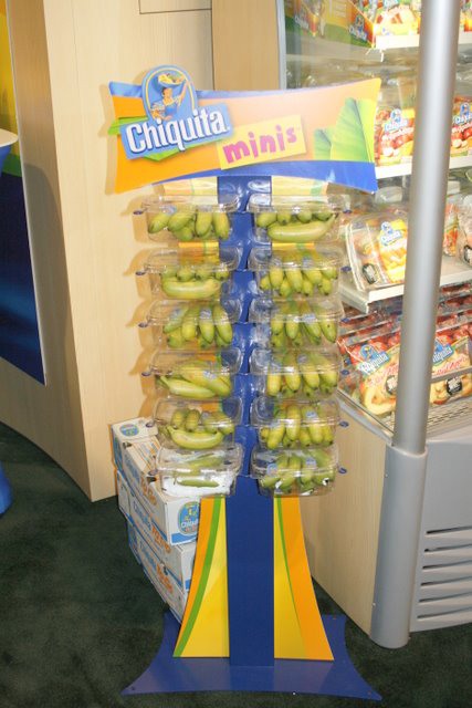 Un simpatico espositore per le baby banane Mini's della Chiquita.