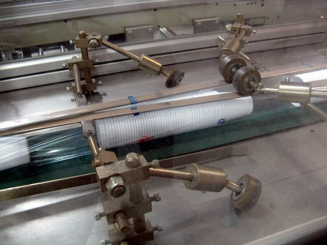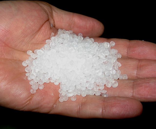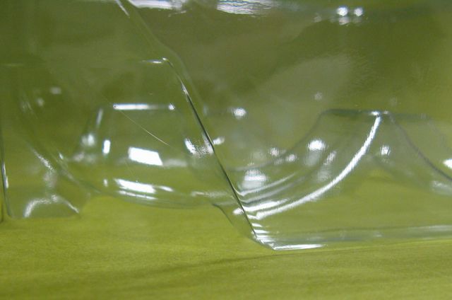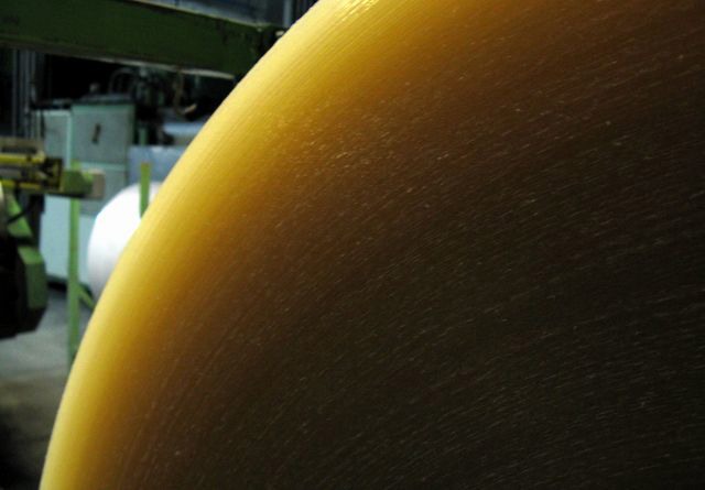 Granulato di polipropilene. Questo materiale viene fuso in un primo macchinario, detto estrusore, e viene ridotto in una lamina di spessore variabile, a seconda delle necessita' produttive.
