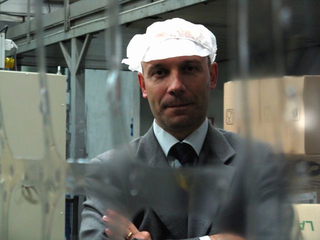 Mauro Stipa. Gli scarti che si generano dopo il taglio delle vaschette vengono rimacinati e reimmessi nel circuito.