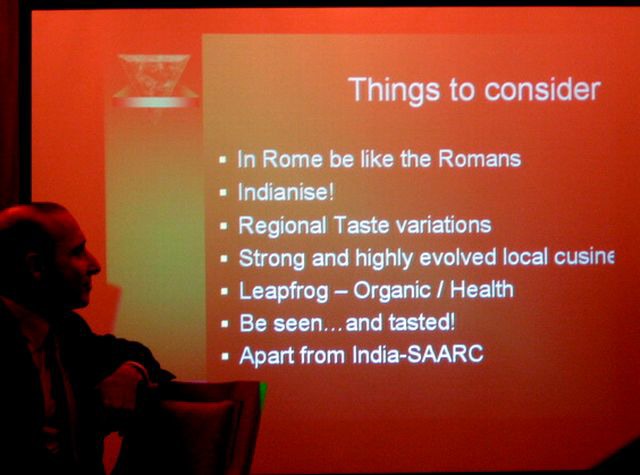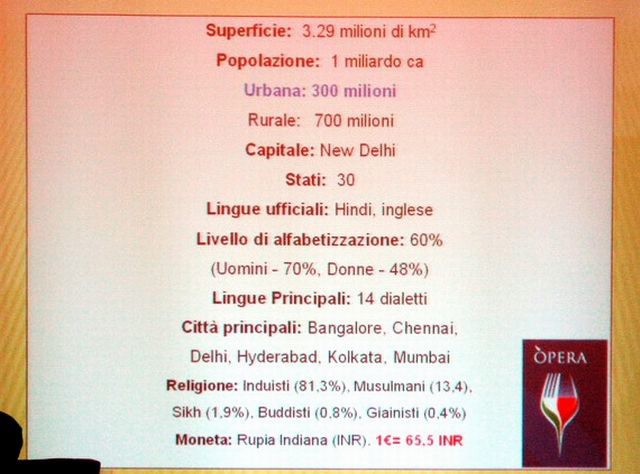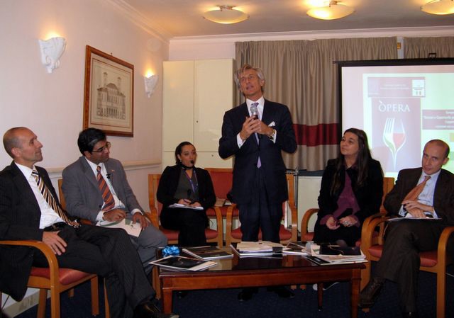 "A seguire, la parola e' passata a Giovanni Garagnani. esponente di una cooperativa vitivinicola del Consorzio Opera, il quale ha dichiarato: "Non e' stato facile presentarsi nei nuovi mercati con un unico paniere di prodotto che mettesse insieme le nostre DOP, IGP e i migliori vini DOC, DOCG e IGT. Ci siamo riusciti promuovendo una nuova formula di comunicazione che ha visto insieme a vari seminari e workshop formativi, momenti di "real cooking", con la presentazione di un ricettario con quattro proposte di menu' con pietanze elaborate utilizzando le eccellenze gastronomiche europee, integrate ed arricchite dai sapori della tradizione indiana"."