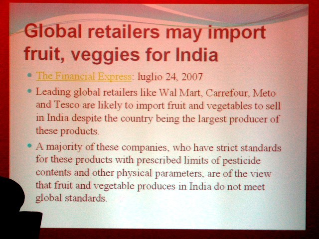 I grandi protagonisti della distribuzione organizzata, come le catene Wal Mart, Carrefour, Metro e Tesco sono intenzionati ad importare prodotti ortofrutticoli in India, anche in quanto la produzione locale, benché molto cospicua, non e' ancora in grado di rispondere agli standards qualitativi richiesti a livello internazionale.