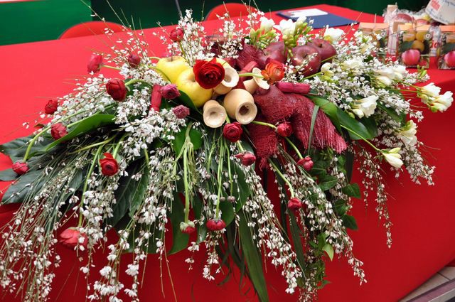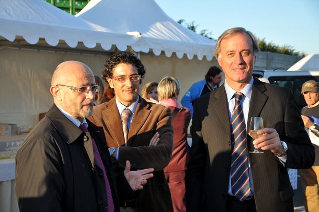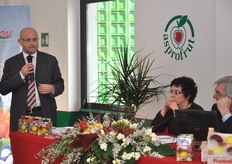 Domenico Sacchetto, sulla destra, presidente di Asprofrut, saluta gli intervenuti alla cerimonia di inaugurazione di Fruttinfiore 2009.