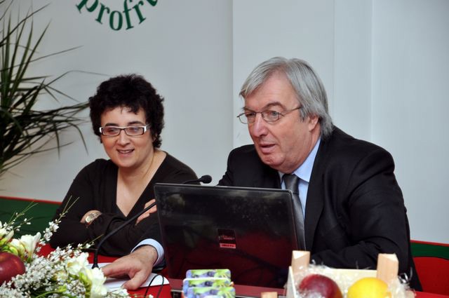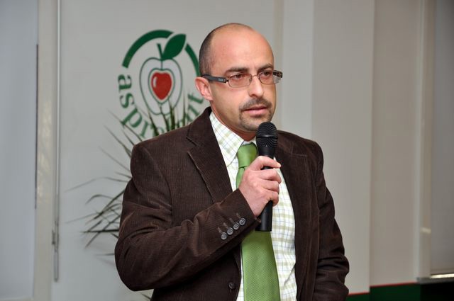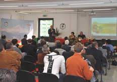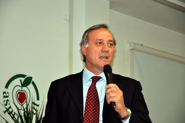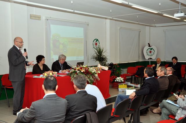 Il convegno e' stato aperto dal Dott. Silvio Pellegrino, direttore del centro di ricerca per la frutticoltura piemontese CReSO. Pellegrino ha sottolineato la forte sinergia che unisce il momento produttivo a quello della ricerca e sperimentazione: le linee guida vengono infatti decise insieme e co-finanziate dagli stessi produttori frutticoli della regione.