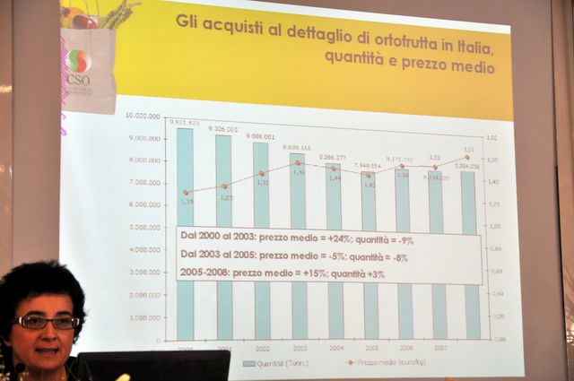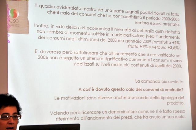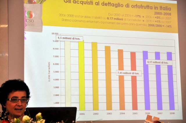 Elisa Macchi del CSO (Centro Servizi Ortofrutticoli) ha presentato una relazione sull'andamento dei consumi di frutta e verdura in Italia.