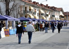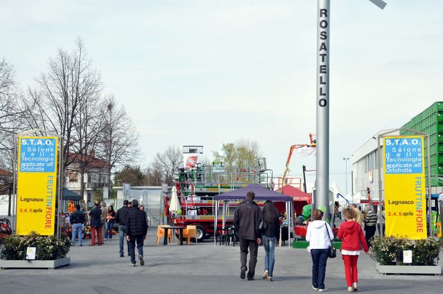 Nel centro cittadino di Lagnasco, intanto, Fruttinfiore presenta tutte le sue esposizioni. Questo e' l'ingresso al Salone delle Tecnologie applicate all'Ortofrutta.