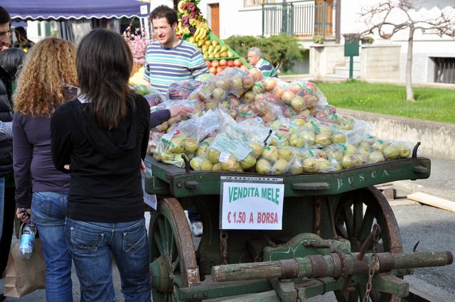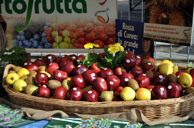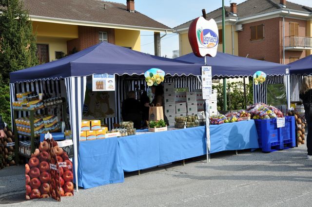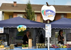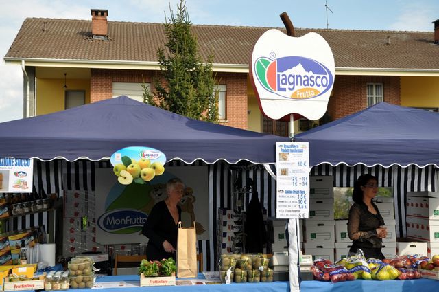 Un banchetto allestito da Lagnasco Group, altra principale associazione di produttori della zona, insieme a Ortofruit Italia e Asprofrut.