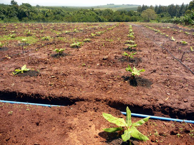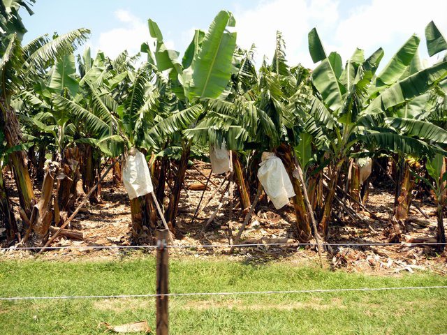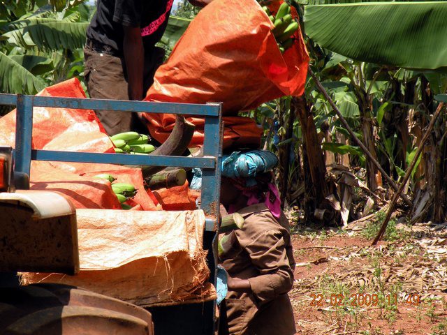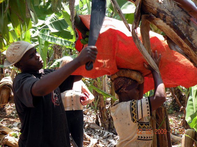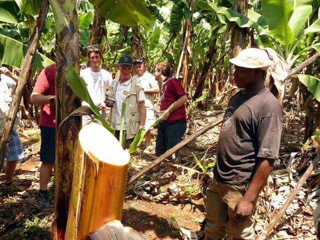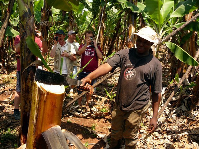 Una volta raccolte le banane si procede al taglio del fusto, che viene lasciato in campo come fertilizzante organico, in quanto costituisce un'importante fonte di potassio.