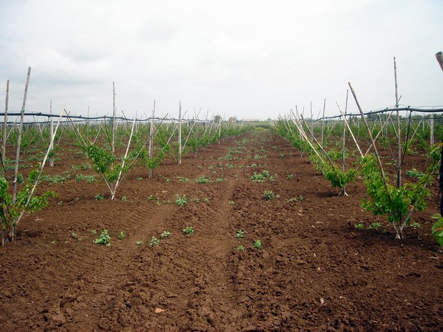 L’apertura delle branche principali e' ottenuta con interventi di potatura verde e con il peso dei frutti.