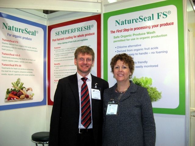 Stand AgriCoat NatureSeal. In rappresentanza Simon Matthews e Karen Murphy.