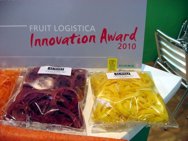 "Tra i dieci candidati al FLIA 2010, il Fruit Logistica Innovation Award che premia ogni anno le novita' piu' interessanti del settore ortofrutticolo, figura anche il prodotto "Carrot Fettuccini"."