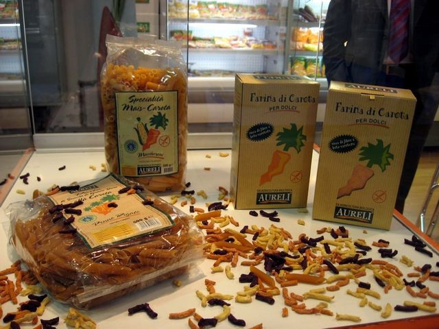 Tra i prodotti che l'azienda Aureli propone ci sono anche la pasta, che contiene fino al 20% di farina di carota, e la farina di carote per dolci, prodotta dall’essiccazione di carota con l’aggiunta di un 2% di succo di limone.