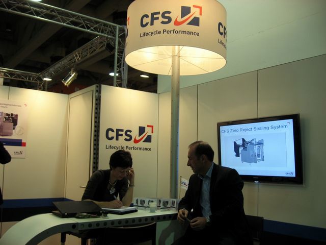 "Stand CFS Weert B.V.(Olanda). CFS svolge un ruolo attivo nella creazione di soluzioni innovative di imballaggio. Con l'approccio olistico "Lifecycle Performance" l'azienda mira a creare soluzioni che aumenteranno le prestazioni nel tempo."