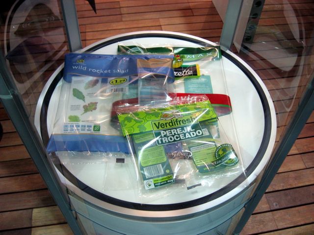 Dettaglio dei prodotti in vetrina alla fiera internazionale.