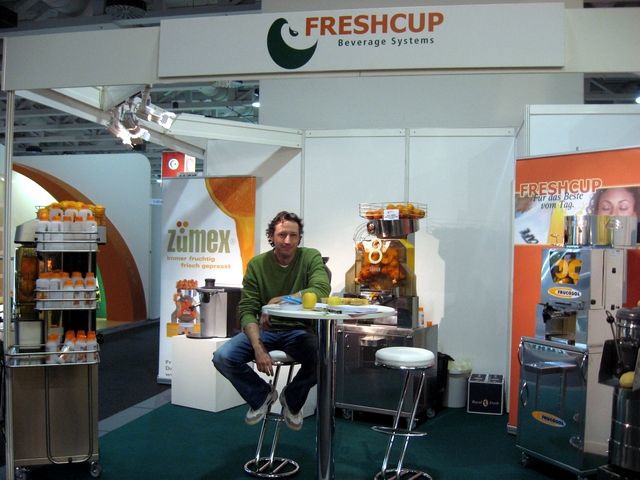 Stand Freshcup Bverage Systems (Germania). In foto Martijn Van der Maarel della Zumex SA, i cui prodotti vengono distribuiti dalla Freshcup in Germania.
