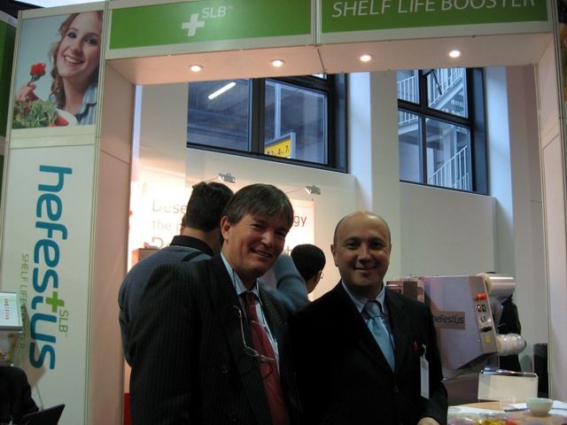 Stand Hefestus Ltd (Israele). Da sinistra a destra: Ron Golan (sales director) e Dino Ponti (responsabile per l'Italia).