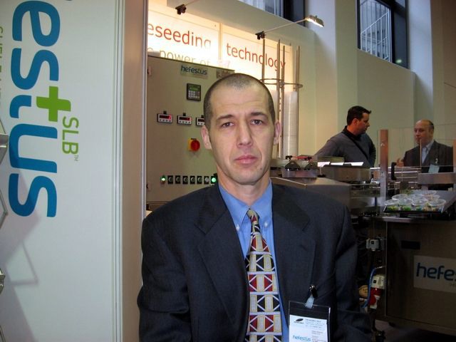 Raymond Mahieu della Smit's Uien mostra le specialita' aziendali presentate alla fiera internazionale.