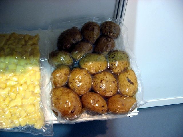 La buccia rimane nel macchinario, mentre il resto dell'ortaggio arriva pelato in una vaschetta esterna.