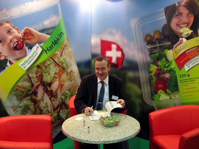 Stand kellermann.ch (Svizzera). In foto Ernst Ziegler, Sales Manager dell'azienda, specializzata in prodotti convenience freschi per il commercio al dettaglio e i distributori all'ingrosso.