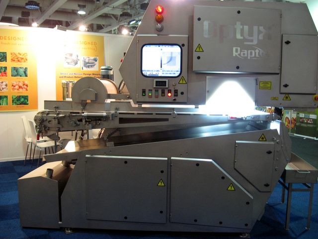 Stand Visys Sorting Systems (Belgio). Nella foto selezionatrice ottica.