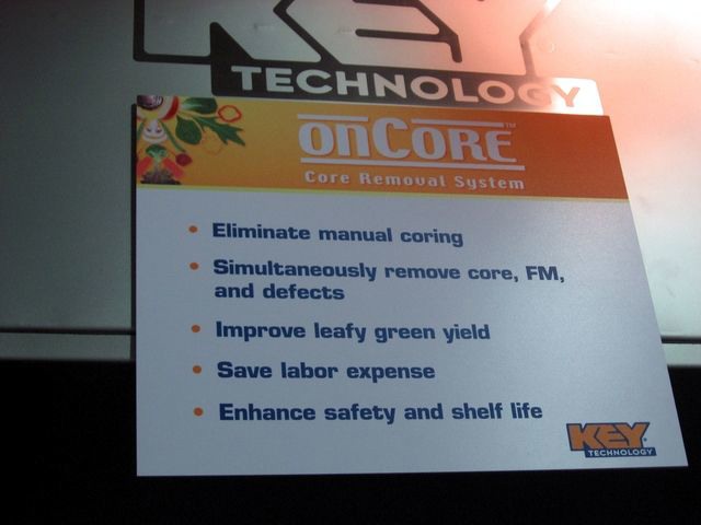 Stand Key Technology (USA). L'azienda progetta, fabbrica e commercializza sistemi di automazione per prodotti alimentari e non solo. Il range di prodotto varia e include anche frutta, ortaggi e patate.