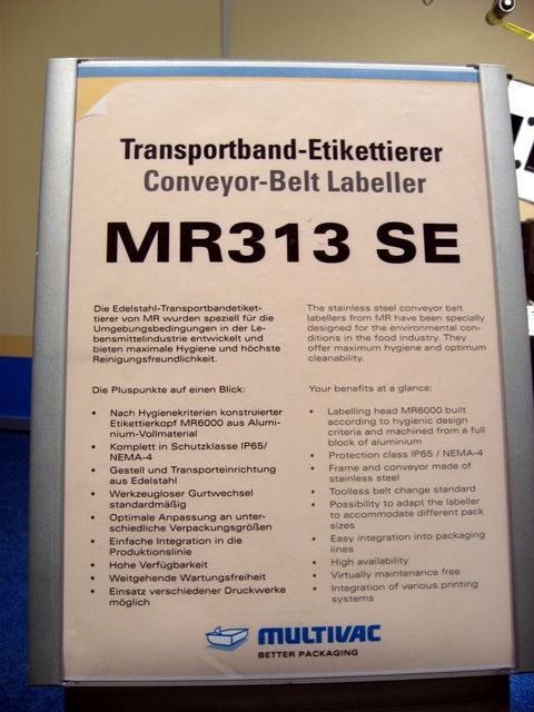 Nastro trasportatore - Etichettatrice MR313 SE della Multivac.