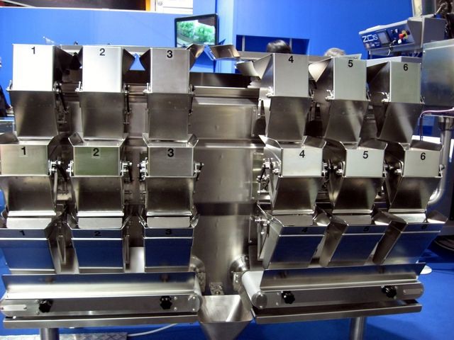 Pesatrice lineare a combinazione Serie C4. La Serie C4, a differenza delle tradizionali pesatrici multiteste, dispone di canali di pesatura paralleli perfettamente alimentati da due piatti di caricamento vibranti. Pesa, infatti, ad elevata velocità e precisione prodotti fragili e delicati.