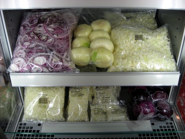 Nel dettaglio, le cipolle tagliate a dadini e a rondelle.