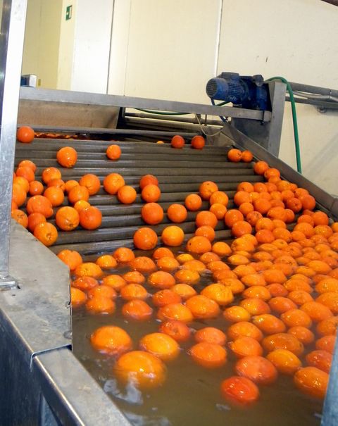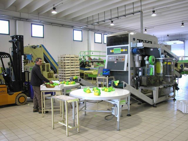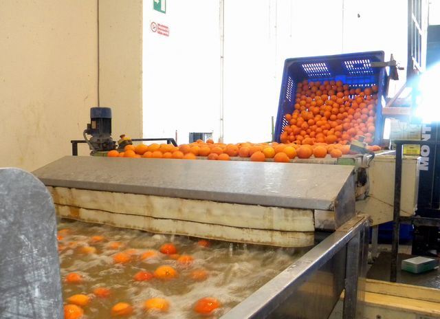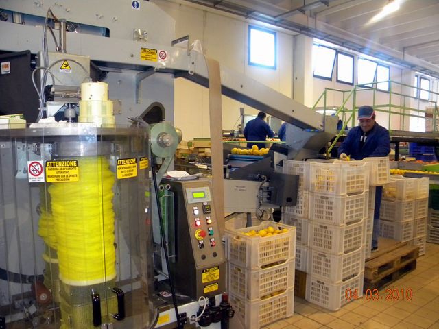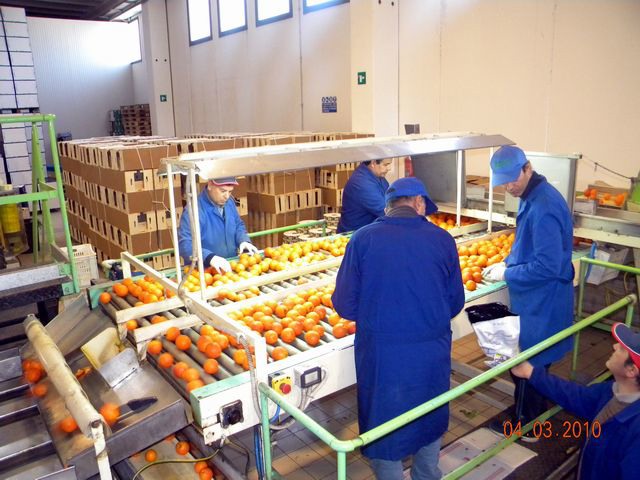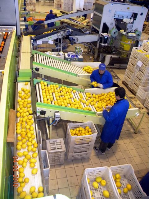 Interni dello stabilimento di Bagheria - Foto attuale e successive: fasi di lavaggio, condizionamento e confezionamento di agrumi.