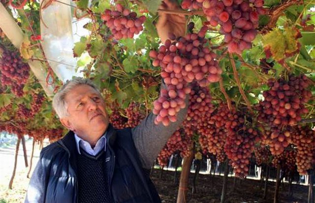 Mario Milillo segue costantemente e accuratamente l'evoluzione della maturazione e della sanita' dell'uva Italia del vigneto a tendone coperto con plastica, realizzato nel 2001 su suolo roccioso.