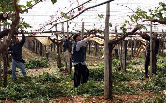 Nella foto, Leonardo Milillo in uno dei vigneti coltivati a uva Italia. I fratelli Milillo hanno ben inserito nell'attivita' aziendale i propri figli, che rappresentano la terza generazione, ognuno con responsabilita' distinte: controllo qualita', amministrazione, controllo attivita' lavorative. Confortati dall'esperienza dei genitori, partecipano attivamente alla gestione dell'azienda. Il 18 ottobre 2011, in alcuni vigneti Italia dei fratelli Milillo si stava svolgendo la raccolta e il confezionamento di uva in buste da 1 kg per la distribuzione svizzera. L'uva viene commercializzata dalla societa' Peviani SpA che possiede una centrale ortofrutticola in Puglia, a Ginosa (provincia di Taranto).