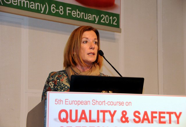 La D.ssa Annette Foerschler della QS Qualitat und Sicherheit Gmbh (Germania) ha illustrato le linee guida della QS relative alla preparazione dei prodotti freschi. QS e' uno standard per l'assicurazione della qualita' dei generi alimentari freschi, che coinvolge tutti gli attori della filiera, dal campo al punto vendita. Ispezionando e integrando l'intera catena di fornitura, un marchio di certificazione come QS crea le basi per migliorare la sanita' degli alimenti e conquistare una fondata fiducia da parte dei consumatori. Le linee guida per la produzione di frutta, ortaggi e patate sono finalizzate ad evitare contaminazioni microbiche, grazie al focus particolare su specifiche norme igieniche e sul monitoraggio.